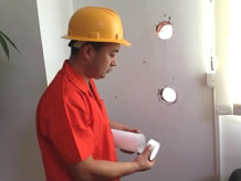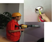步驟七:根據標記開出通風孔并測量墻體厚度